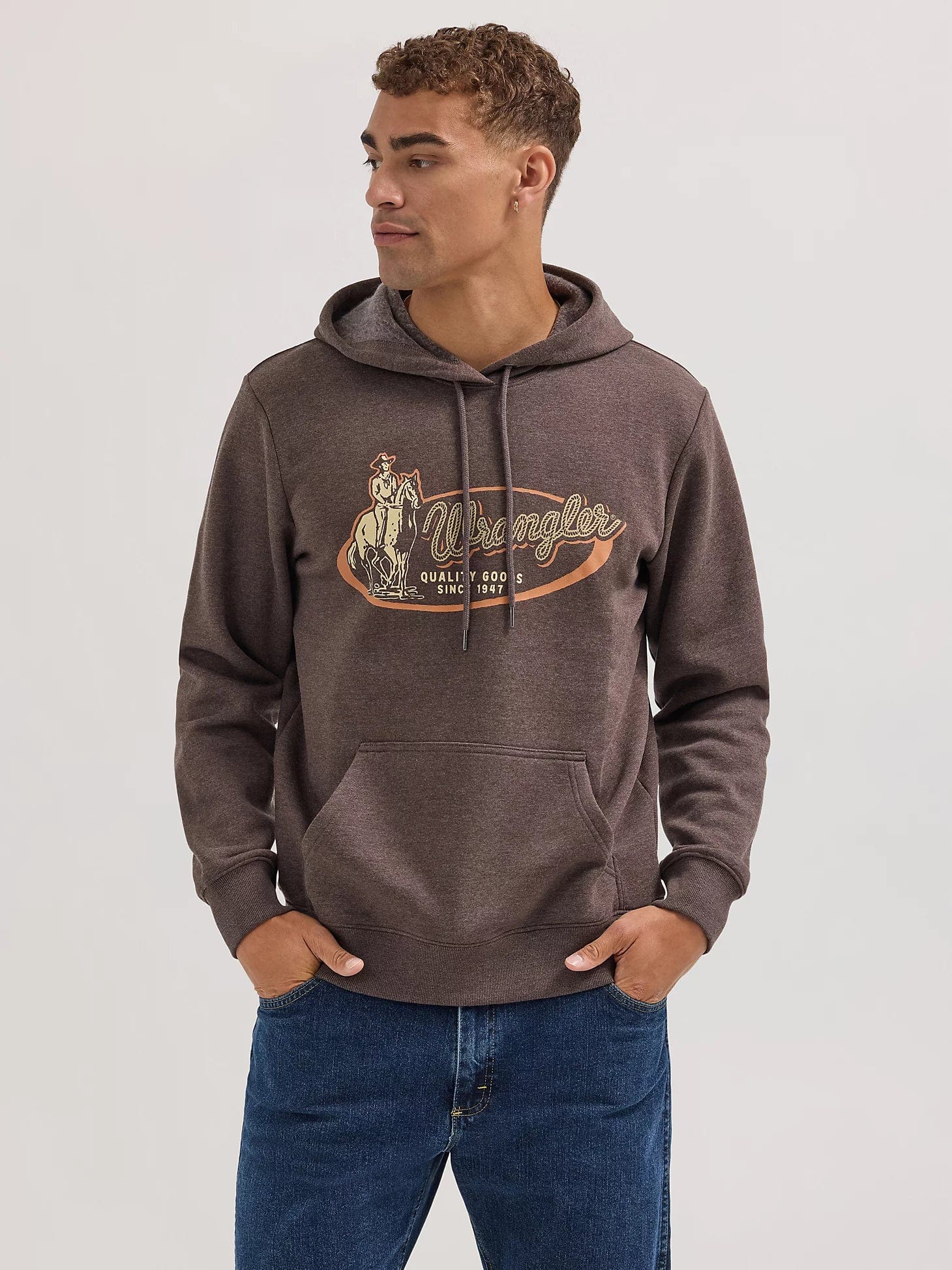 Are you ready for cooler weather? This wrangler logo hoodie is made of a comfy cotton blend for optimum warmth and features a brushed back fleece construction that's cozy enough to take on anything the day has in store. Plus, this sweatshirt comes with a pouch pocket in the front and a drawstring closure for you to find the perfect fit.