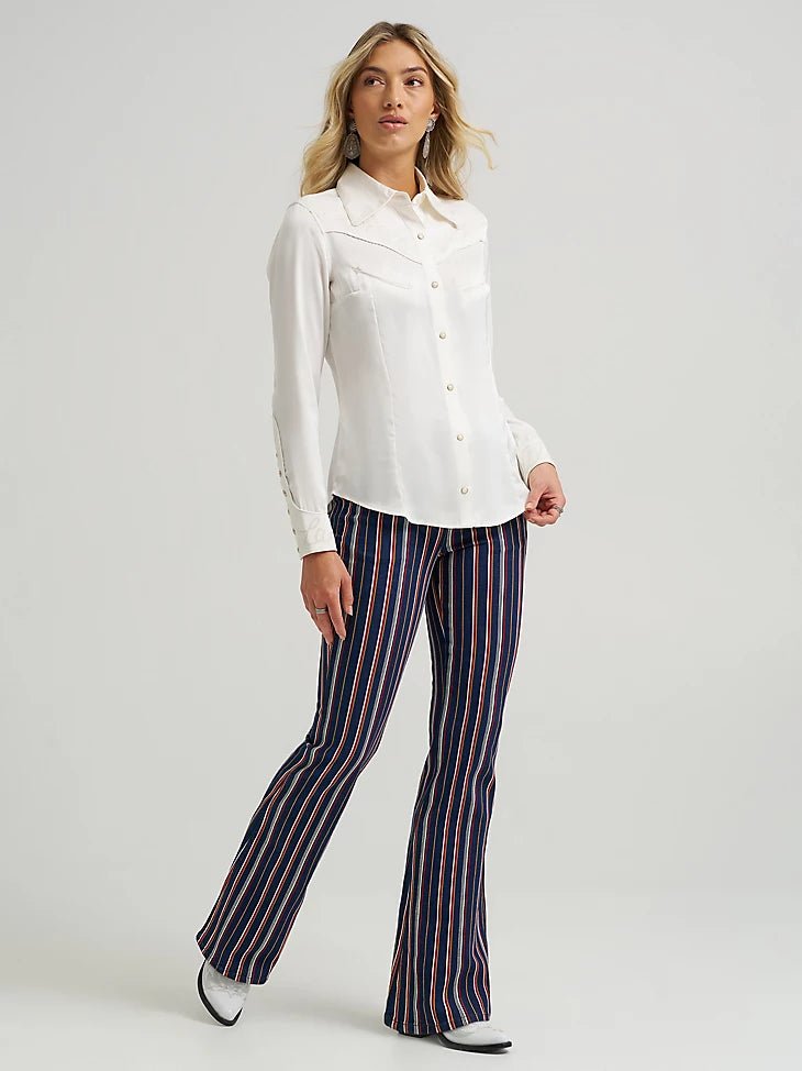 Tailored with darting at the back for a flattering fit, this long-sleeve shirt pairs beautifully with jeans, skirts, or layered under a jacket for concerts, rodeos, or nights out.